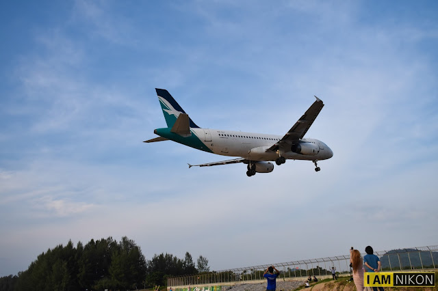 และจุดสุดท้ายที่ดึงดูดให้ปอมาภูเก็ตก็คือ การมาชมเครื่องบิน Landing ระยะประชิดค่ะ วิธีมาก็คือขับรถเลียบทางโรงแรม Centara grand เข้ามาจอดบริเวณต้นสนค่ะ หลังจากนั้นจะเจอหาดที่มีคนมารอถ่ายรูปกัน ตอนแรกเห็นใกล้ๆก็ตื่นเต้นจนกดถ่ายไม่ทัน 555 ต้องตั้งสติสำหรับลำต่อไป ว่าจะกดชัตเตอร์ตอนไหน ในที่สุดก็ได้ภาพดีๆมาค่ะ