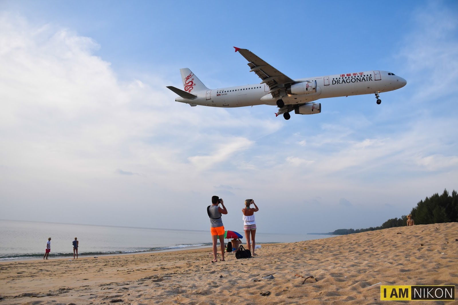 และจุดสุดท้ายที่ดึงดูดให้ปอมาภูเก็ตก็คือ การมาชมเครื่องบิน Landing ระยะประชิดค่ะ วิธีมาก็คือขับรถเลียบทางโรงแรม Centara grand เข้ามาจอดบริเวณต้นสนค่ะ หลังจากนั้นจะเจอหาดที่มีคนมารอถ่ายรูปกัน ตอนแรกเห็นใกล้ๆก็ตื่นเต้นจนกดถ่ายไม่ทัน 555 ต้องตั้งสติสำหรับลำต่อไป ว่าจะกดชัตเตอร์ตอนไหน ในที่สุดก็ได้ภาพดีๆมาค่ะ